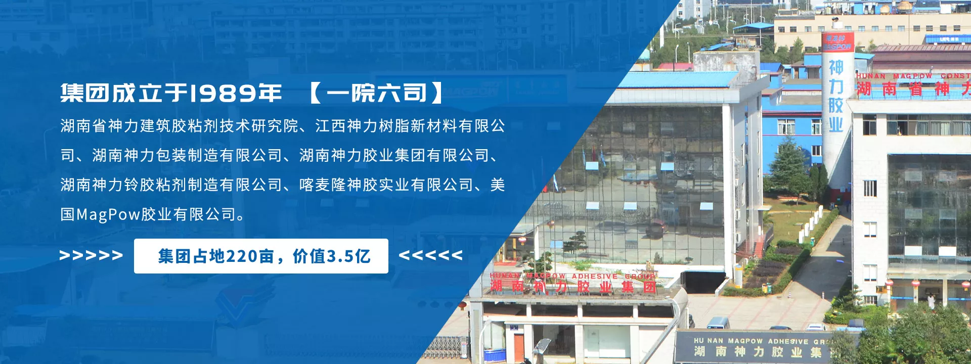我集团成立于1989年,集团已发展到一院六司:湖南省神力建筑胶粘剂技术研究院、江西神力树脂新材料有限公司、湖南神力包装制造有限公司、湖南神力胶业集团有限公司、湖南神力铃胶粘剂制造有限公司、喀麦隆神胶实业有限公司、美国MagPow胶业有限公司。